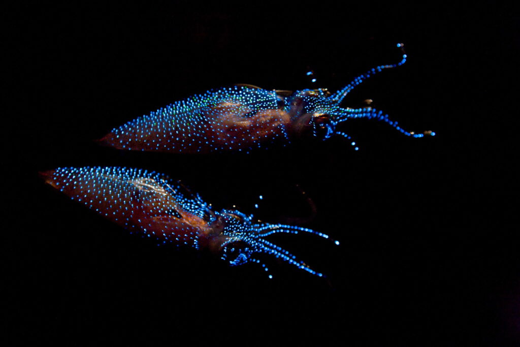 闇に浮かび上がる、命の輝き ― ホタルイカ発光鑑賞!漁港内にて青く光るホタルイカを鑑賞します。